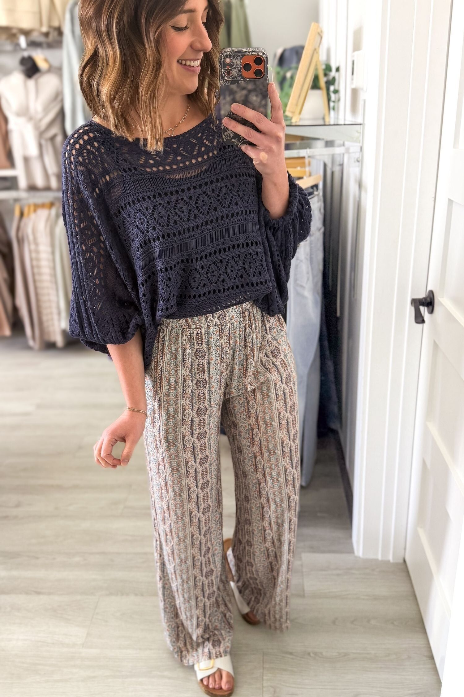 It’s that perfect lightweight, open knit that gives you coverage without feeling heavy — like you’re wearing something… but barely. The slouchy dolman fit is SO flattering and relaxed (aka nothing clinging where you don’t want it).